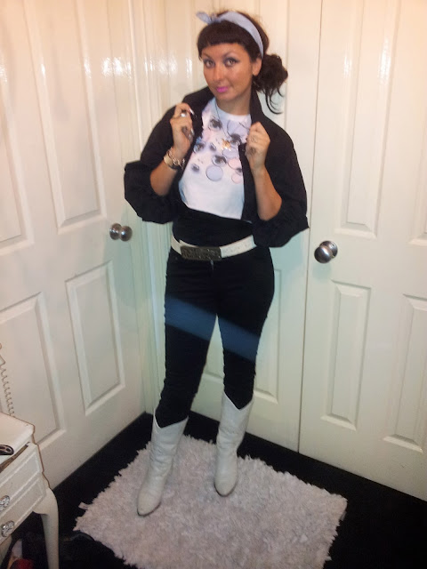 vintage shirt- think its for sale on asos? maybe check. bow- vintage. jeans from peoples market and leather cowboy boots 80s vintage. A touch of red nails and lips to add a touch of colour